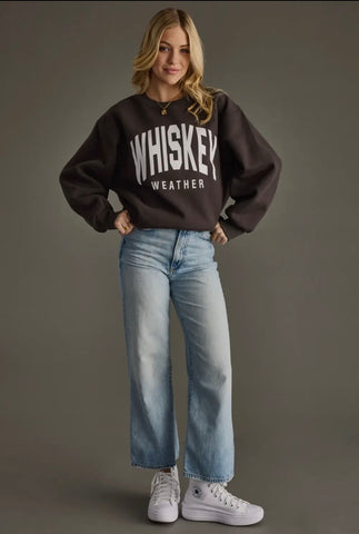 Cozy up in comfort and style with our charcoal crewneck sweatshirt, featuring bold white “Whiskey Weather” lettering across the front. Made from a soft 50/50 cotton-poly blend, this midweight sweatshirt offers the perfect balance of warmth and breathability. Ideal for crisp fall days, bonfires, and nights spent sipping something smooth.