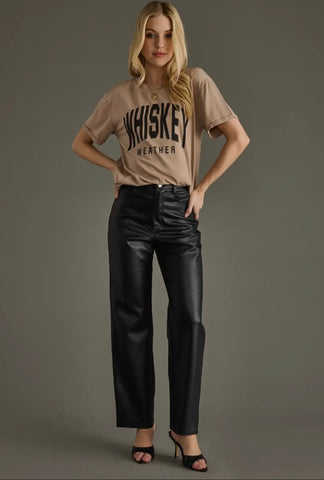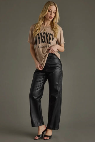 Our light brown Whiskey Weather graphic tee is the perfect way to wrap up summer in style. Featuring bold black lettering on the front, this soft and lightweight blend of 60% polyester, 35% rayon, and 5% spandex keeps you cool and comfortable on those last warm days. It’s the final addition to our summer lineup. Easygoing, flattering, and made for those who know every season pairs well with a little whiskey weather.
